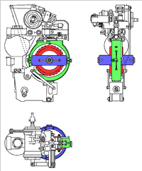 Umfang 28 schaufelförmige Taschen eingefräst waren (rot auf den Bild). Beim An- und Nachblasen wirkten sie wie die Schaufeln